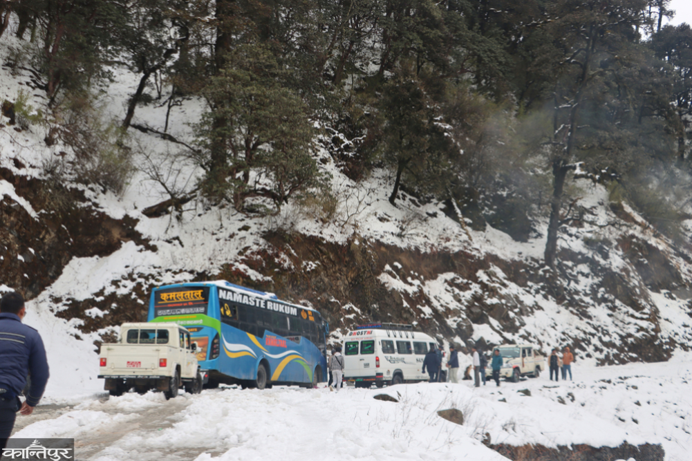 ढोरपाटन के स्यालपाखे, नवी, छेंतुंग, निसेलधोर, देउराली और अन्य इलाकों में मोटी बर्फ जमा हो गई है, जबकि घाटी में भी ठंढ देखी गई है।