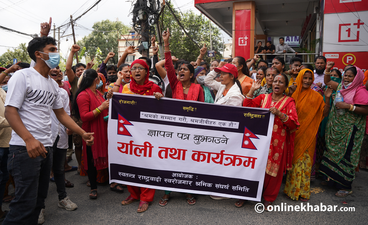 उन्होंने नारे लगाते हुए कहा कि उन्होंने मेयर बालेन से मिलने और ज्ञापन सौंपने की कोशिश की, लेकिन उन्होंने परवाह नहीं की। उन्होंने हमारे जीने का अधिकार सुनिश्चित करने, रोजगार की गारंटी देने, फुटपाथ व्यापारियों का प्रबंधन करने, ग्रामीण आवास की गारंटी देने, श्रमिकों का सम्मान करने, शहर की पुलिस के अत्याचार को रोकने और बिना किसी विकल्प के धोखा देने जैसे नारे लगाए हैं।वे स्वतंत्र राष्ट्रवादी स्वरोजगार श्रम संघर्ष समिति के नाम ज्ञापन सौंपने गए और चेतावनी दी कि अगर एक सप्ताह के भीतर तीन सूत्री मांग पूरी नहीं की गई तो वे और तीव्र विरोध शुरू करेंगे।उनकी मांग है कि सड़क किनारे स्वरोजगार करने वाले श्रमिकों का दस्तावेजीकरण किया जाए और उन्हें पहचान पत्र दिया जाए, सड़क पर स्वरोजगार करने वाले श्रमिकों को मानकों के अनुसार प्रबंधित किया जाए, प्रशासन के अमानवीय व्यवहार को रोका जाए और सरकार के साथ पिछले समझौते को लागू किया जाए।काठमांडू मेट्रोपॉलिटन सिटी ने कुछ समय के लिए बनेश्वर और अन्य क्षेत्रों के फुटपाथों पर कारोबार बंद कर दिया है।