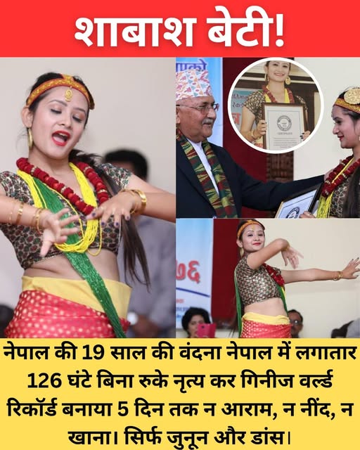 सोचिए… आप 1–2 घंटे डांस करें तो शरीर थककर जवाब दे देता है, लेकिन नेपाल की 19 साल की वंदना नेपाल ने वो कर दिखाया जो इंसानी हिम्मत की हद से भी आगे है।